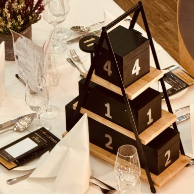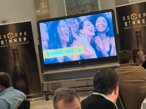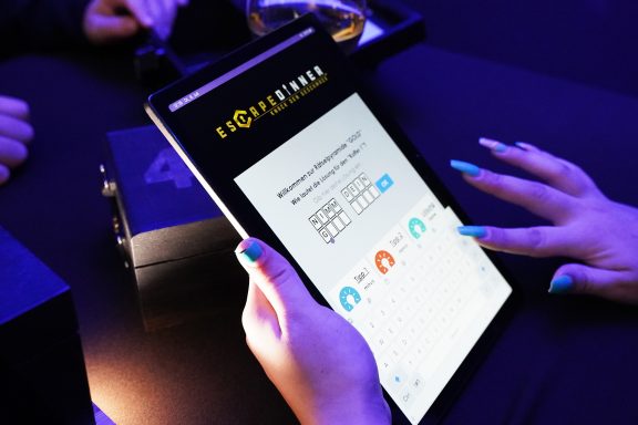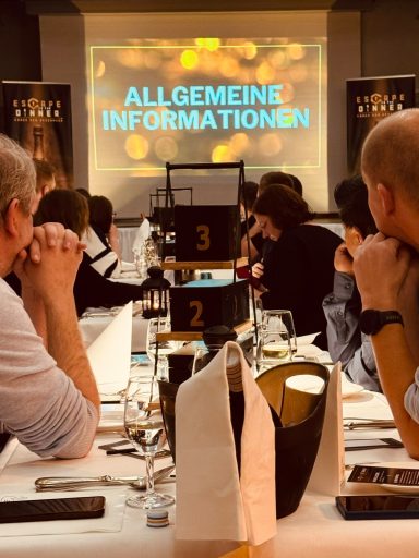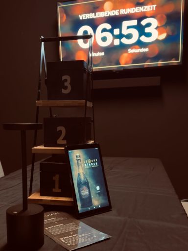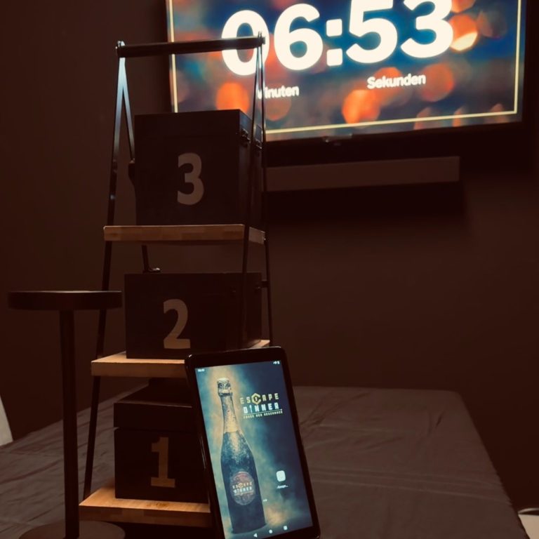Das Escape-Dinner ist in insgesamt 3 Spielrunden unterteilt, in denen du gemeinsam mit deinem Team spannende Rätsel löst, Codes knackst und dich Stück für Stück dem Geheimnis des verbotenen Champagners näherst. Zwischen den Rätselrunden sorgen unterhaltsame Videoeinspieler für charmante Lacher und überraschende Erkenntnisse. Ob witzige Interviews, schräge Musikeinlagen oder mysteriöse Hinweise – ihr werdet Teil einer Show, die euch zum Schmunzeln bringt und euch mitreißt. Zusätzlich erhält jedes Team ein Tablet und einer eigens für das Escape-Event entwickelten Escape-Dinner-App, die euch durch das Event leitet und eure Punkte zählt. Interaktiv, intuitiv und richtig smart.